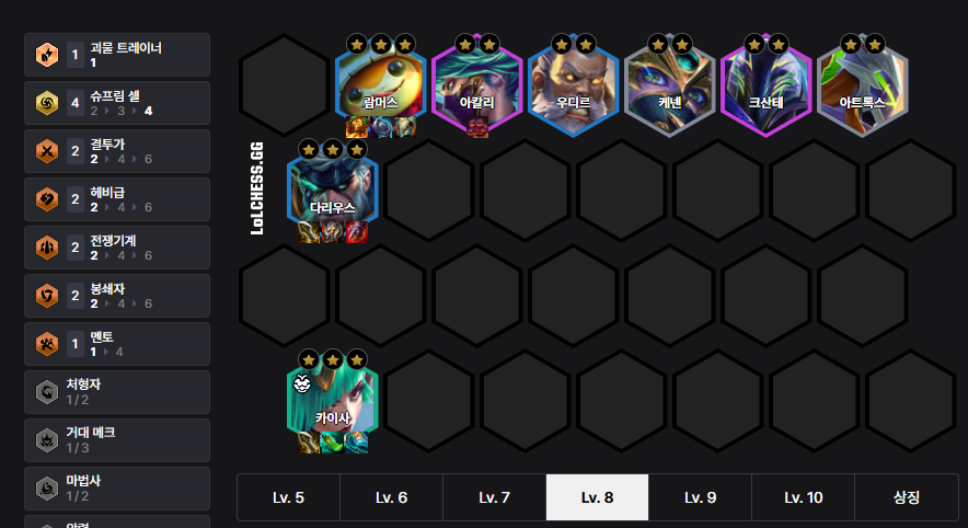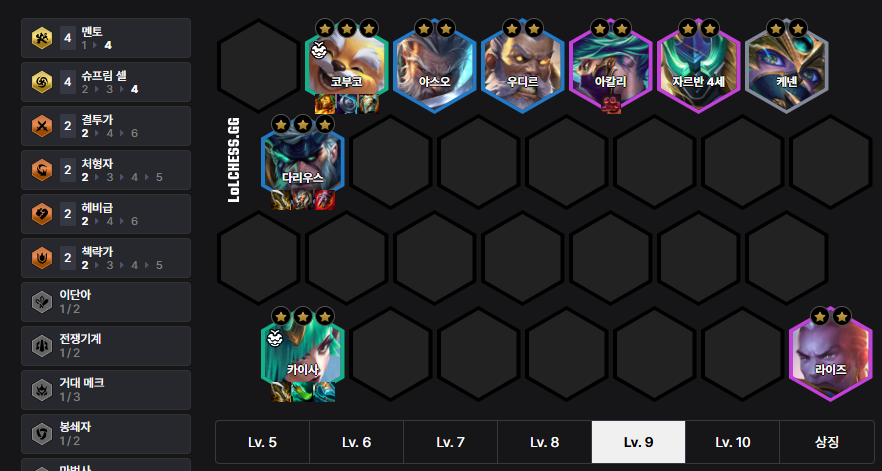 The Rammus Kai'Sa Reroll Deck operates by switching to Rammus when Lulu appears early, and rerolls at level 6 to aim for Rammus, Kai'Sa, and Darius 3-star. If Akali appears quickly, switch to level 7 and utilize the 4 Supreme Cells synergy. We recommend Gargoyle Stoneplate for Rammus and Shojin's Spear for Kai'Sa.