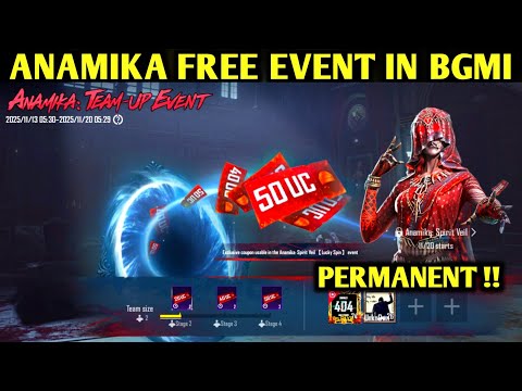 Detailed explanation and instructions on how to participate in BGMI's new Anamika Spirit Veil event. Learn how to earn UC vouchers by forming or joining a team, and how to get discounts in the Lucky Spin event opening on the 20th. Also provides Redeem Shop information where you can exchange the Anamika set for tokens.
