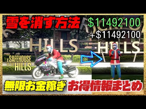 This video provides information on how to remove snow in GTA Online, updated unlimited money-making methods, 2x MC Business rewards event, 2x Nightclub Business rewards event, LS Car Meet Prize Ride, Casino Prize, Time Trial, Hao's Special Works Time Trial, Cracking Bell Factory Raid Bonus, and more.