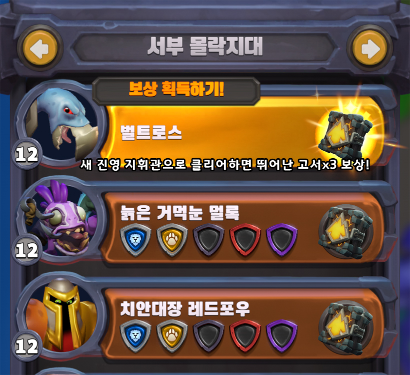 영웅 캠페인은 적이 특성을 가지고 나오거나 기믹이 추가되는 등 어려워지지만, 2~3레벨 높은 덱을 구성한다면 클리어에 큰 무리가 없으니 적극적으로 도전해 경험치와 코인을 모읍시다!