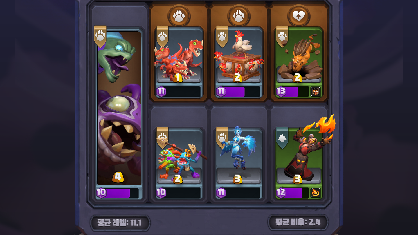 늙은 거먹눈 멀록 : "배치 후 5초간 다른 미니 소환에 쓴 금화 1당 본진에 멀록 바다 사냥꾼 1마리 소환"
