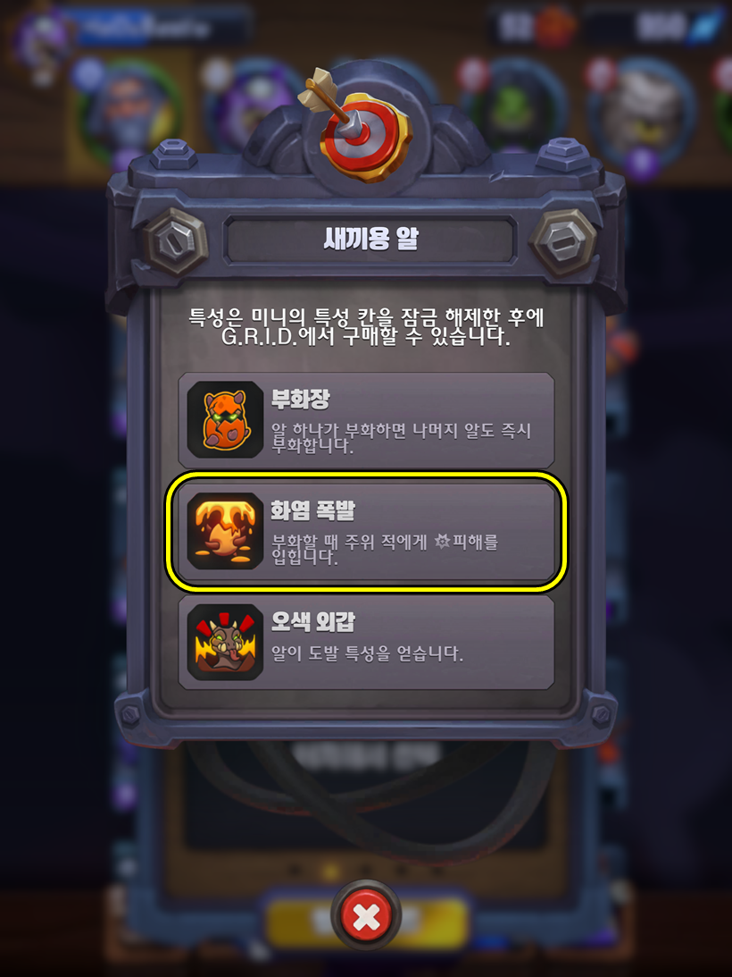 | [화염 폭발] 해금 새끼용 알 | [전염성 휩쓸기] 해금 하피 | 특성 해금X 하피 | 특성 해금X 새끼용 알 |