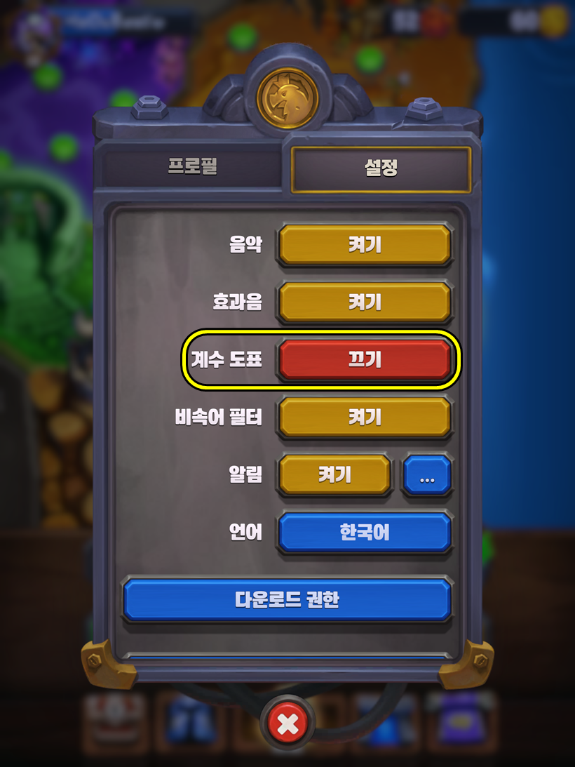워크 럼블의 설정에 가보면 계수 도표라는 것이 있습니다.이 계수 도표가 뭘까 싶어서 "켜기"로 바꾼 후 인게임에 들어가보았습니다.계수 도표는 그냥 좌하단에 나오는 상성표시였습니다.게임을 하면 자연스럽게 외우게 되는 정보이지만 게임을 처음하시는 분들이나상성이 아직 익숙하지 않으신 분들은 켜두는 것도 좋은 방법일 것 같습니다!개인적으로는 "상성 정보"같은 쉬운 단어를 썼으면 더 알아보기 쉽지 않았을까 싶습니다...ㅋㅋㅋ