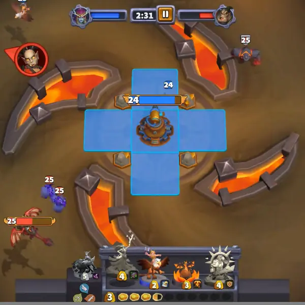 데피아즈단 좀도둑, 화염술사 → 본진 포탑