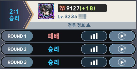 1라운드을 내주고 2~3라운드를 이겨 최종 승리