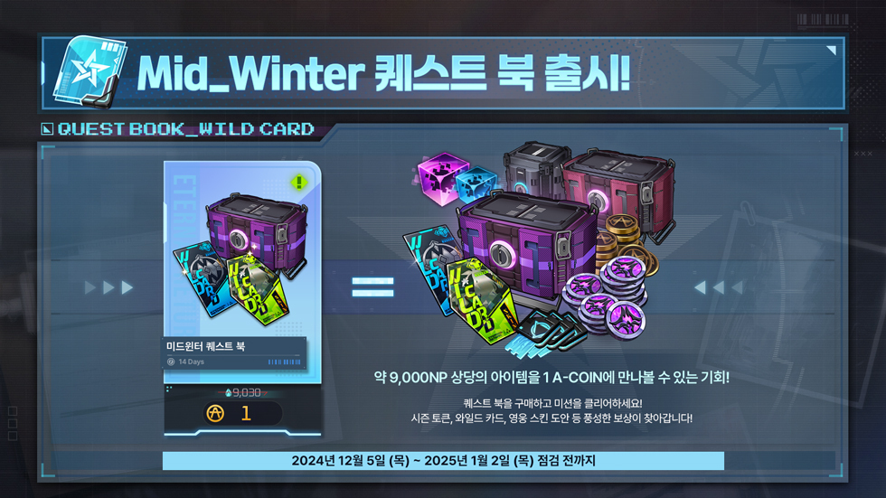 ※ MIDWINTER 퀘스트 북으로 획득한 보상은 추후 다른 용도로 활용될 수 있습니다.