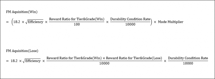 The amount of energy that can be used per day is limited depending on the controller's type and number, so it is important to gain as much FM as possible by spending the energy efficiently. Basically, the FM mining is a reward from linking a controller and using up the energy by fighting. The amount of FM that can be earned through winning or losing varies by the season tier, the efficiency value of the controller, and the durability of the controller.