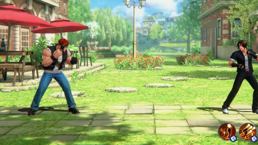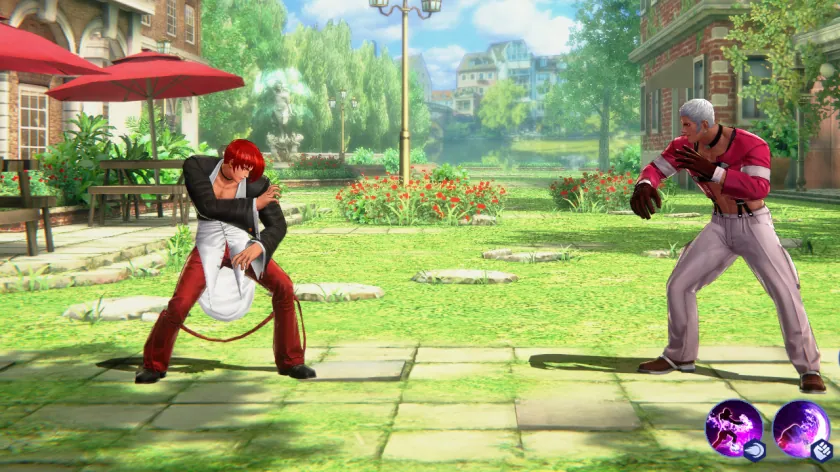 You can see when to counter through the striking motion of Kyo and Iori's charging grapple attack (E), but if you try to counter Orochi Yashiro's charging grapple (E) after seeing it, it's too late. It's very likely that you'd be already grappled and upside-down. Therefore, you need to know which fighters' grapple skills can be countered, practice the counter timing through practice mode, and gain more experience in fights.
