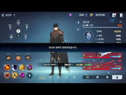 나 혼자만 레벨업: 성진우 능력치(스탯) 콘텐츠별 분배 방법성진우의 능력치 분배를 콘텐츠별로 어떻게 해야 하는지에 대한 정보 제공. 광휘의 공방은 올 근력, 길드 보스는 지능 스탯을 활용하며, 정밀도 90% 이상 확보가 중요.