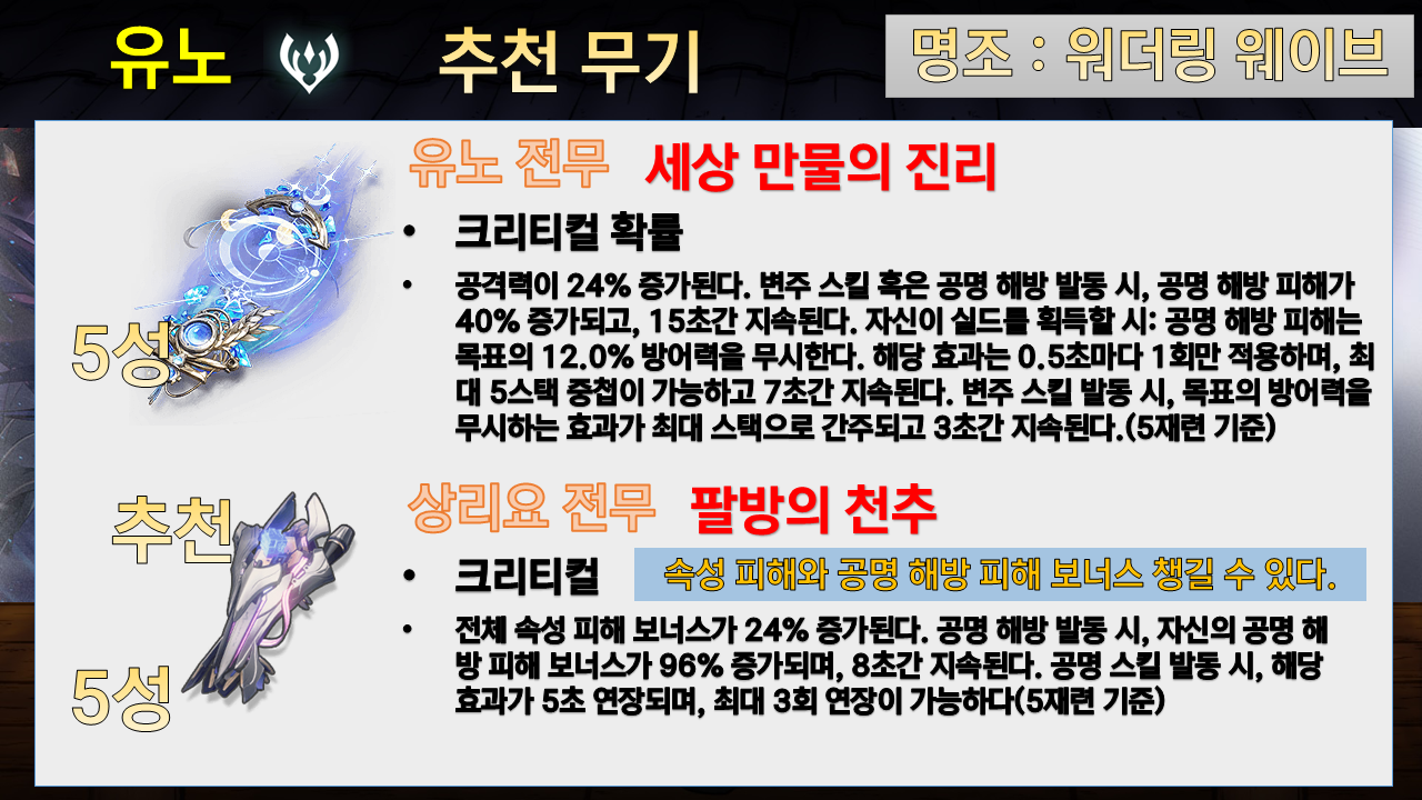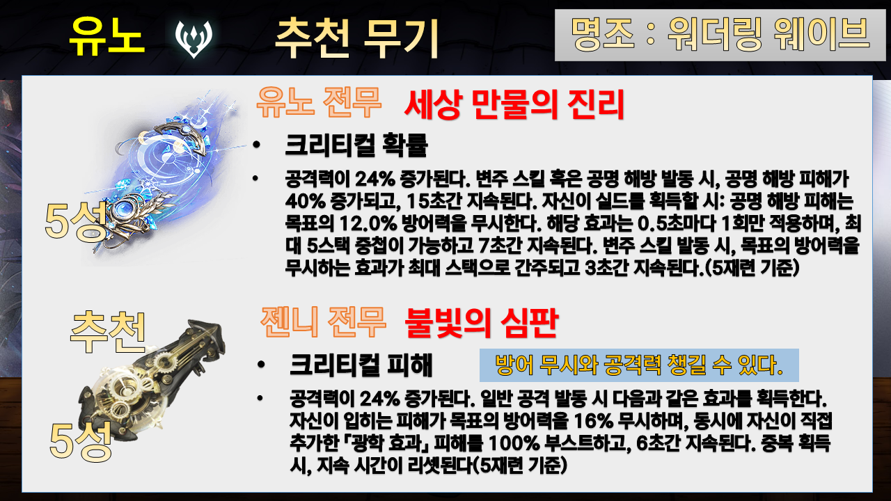 추천 무기는 전무가 아니면 상시 5성 무기를 사용하는 것이 최선입니다.
