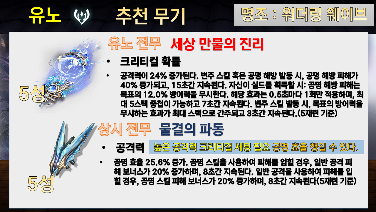 크리티컬 피해와 공격력 증가를 챙길 수 있습니다.